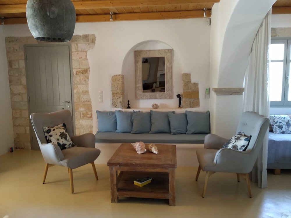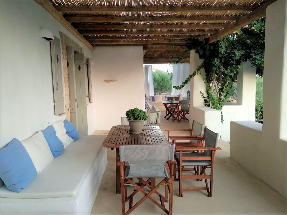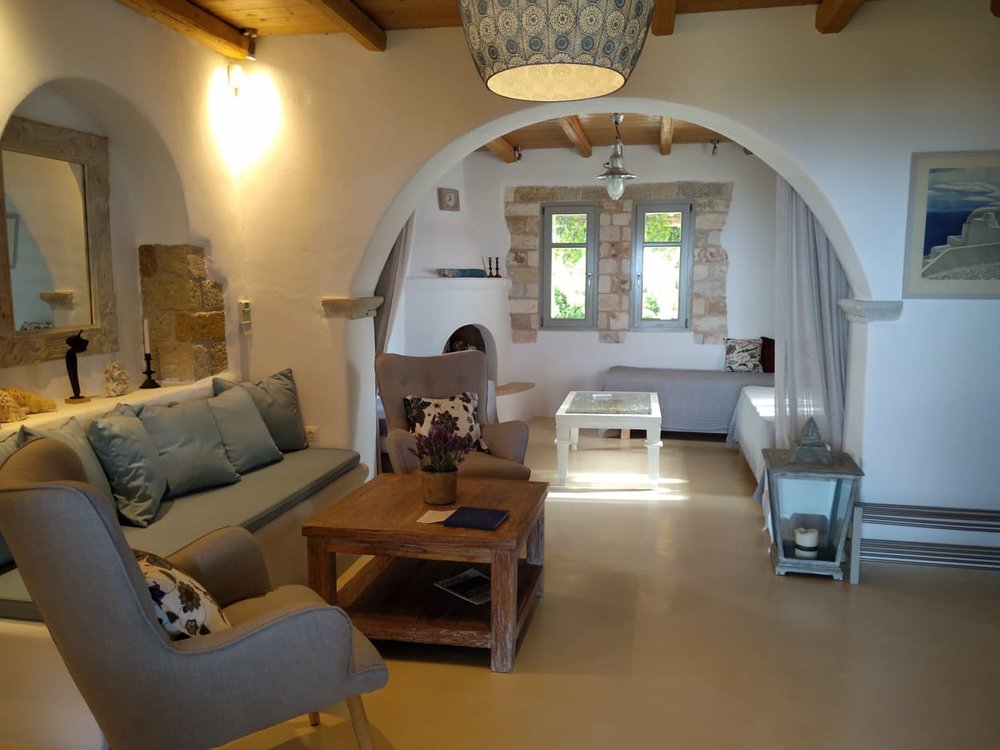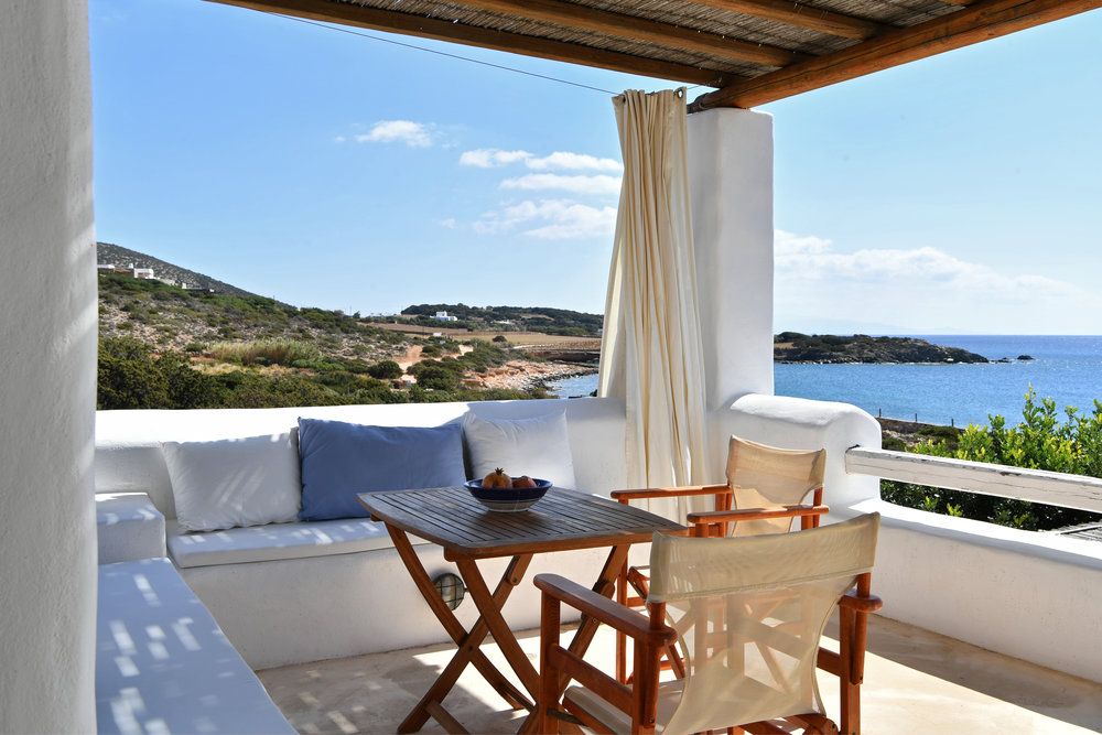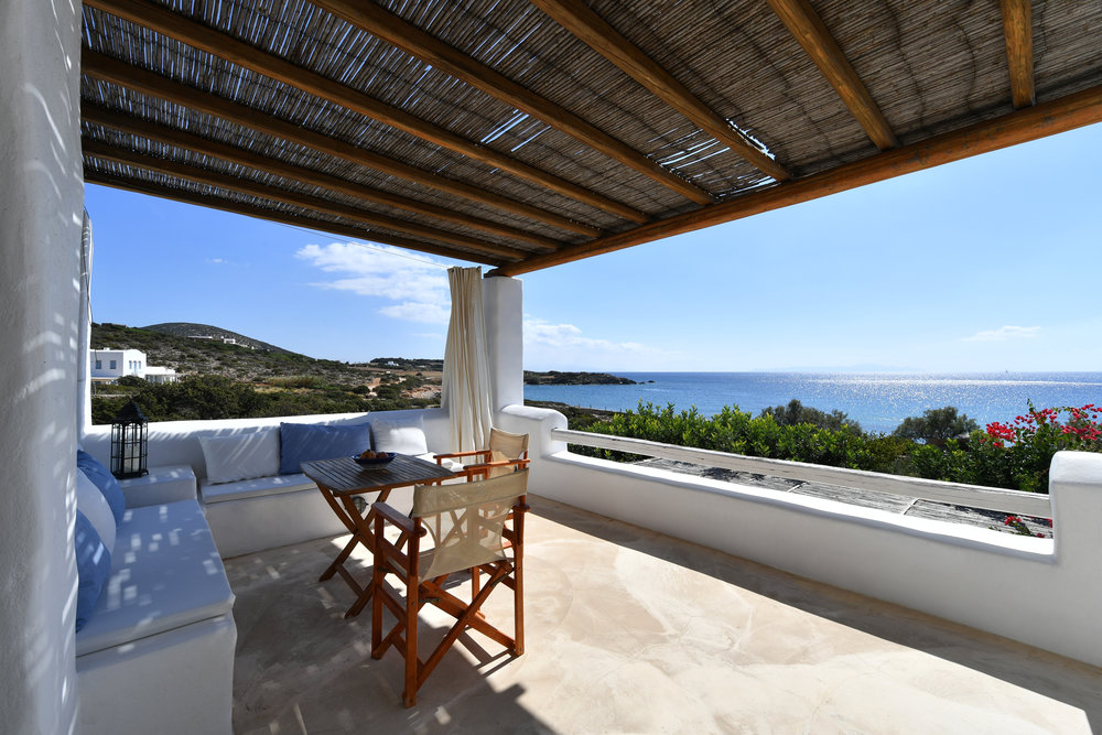 The villa is located on a large property by the sea, at the protected cove of Faragas, on the southern coast of the island of Paros. It is one of the three adjacent villas all constructed according to traditional Cycladic architecture while the interior spaces compine traditional and contemporary elements of style, thus creating an elegant, modern ambience.